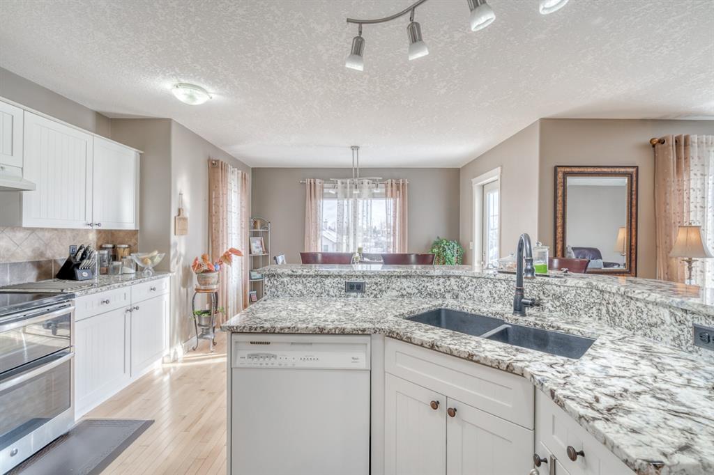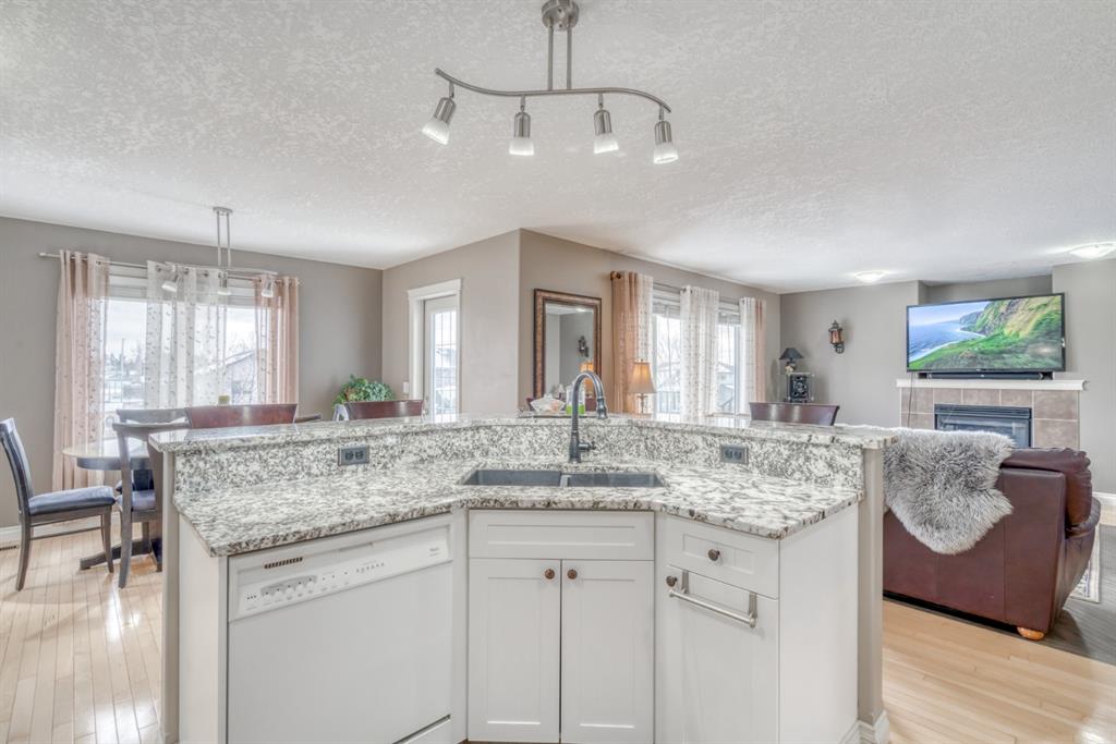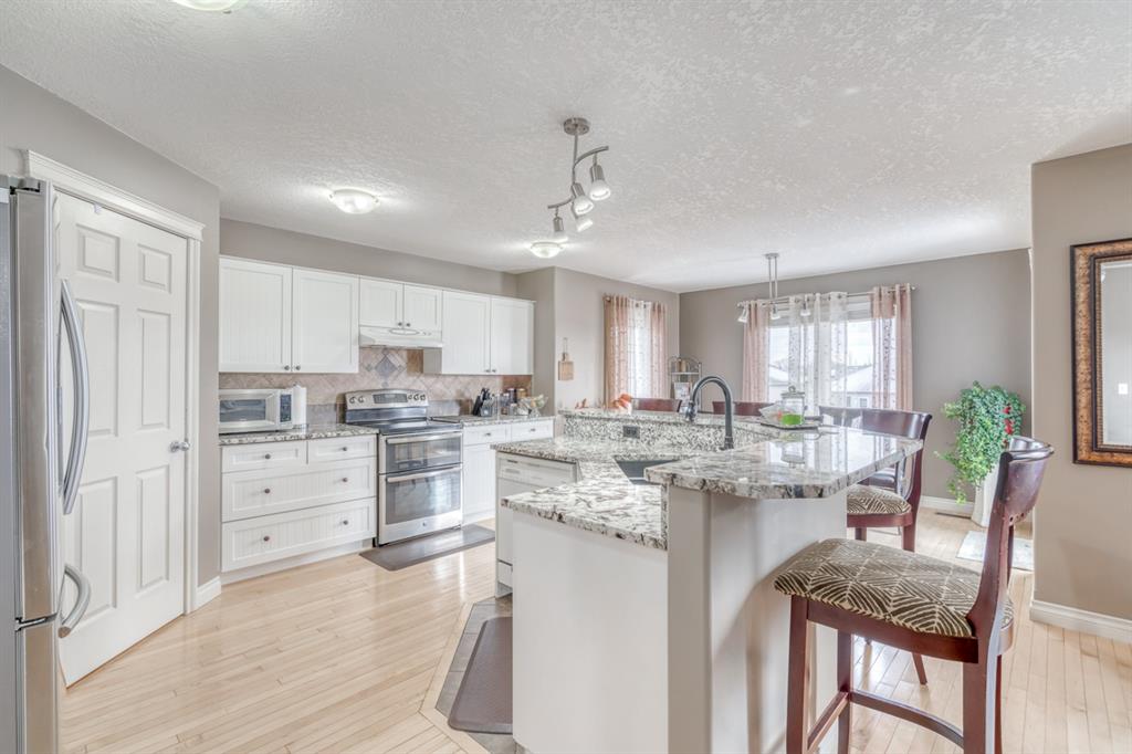 *Visit Multimedia Link for 360º VT & Floorplans!* MOVE-IN READY 3-bed family home BACKING ONTO GREEN BELT w/ FULLY FINISHED WALKOUT BASEMENT! Small town living with easy access to Calgary and the mountains doesn’t get any better than this! This 3-bed, 3.5 bath home in Crossfield is ideally located on a quiet street steps from a playground w/ a heated attached front garage and large private yard. With over 2,870 sqft of living space, including a fully finished basement w/ vinyl flooring, wet bar, and 3-pc bath, this well-cared-for home is an excellent option for families. The REMODELLED kitchen features a new SILGRANITE under-mount sink, NEW GRANITE COUNTERTOPS, a new faucet, tons of pot and pan drawers, a walkthrough pantry, and S/S appliances, including a Samsung fridge. A dining nook overlooks the oversized, elevated back deck w/ new deck boards and railing w/ stairs down to the yard. The kitchen shares an open concept design with the living room, which centers on a gas fireplace w/ a stone surround raised heart and stone mantel. The shared laundry/mudroom features a sink w/upper and lower storage w/ 5-yr old side-by-side washer and dryer. The attached garage has 10-12 ft ceilings w/ 8-ft tall doors and lots of space for toys and cars! Upstairs, enjoy 3 spacious bedrooms, including the primary suite w/ private 4-pc ensuite w/ jetted soaker tub, and a main 4-pc bath. A fully developed, bright WALKOUT basement features vinyl flooring, a full wet bar w/ sink, is wired for sound, and a 3-pc bath w/ tiled shower. This massive space is big enough to add a future bedroom or private office space for growing families! Other highlights include weatherized windows throughout, roughed in A/C, drip humidifier, patterned hardwood flooring on the main and upper floors, garden shed, fire pit, and a concrete patio below the raised deck. A charming small-town atmosphere awaits you in Crossfield! You’re surrounded by beautiful mountain views and vibrant canola fields while being just 30-min north of Calgary. Recreation, shopping, amenities, and more abound – there’s an 18-hole golf course in town, a year-round Farmers’ Market, several large central parks w/ a splash park for the kids, multiple off-leash dog parks, and many local shops like Crossfield Meats, Carmens Bigway Foods, and Stacked Bistro and Bakery. Crossfield is also home to 6 public/separate schools, 2 charter schools, and nearby colleges, include Olds and Red Deer College. If you’re looking for a new place to call home, 152 Sunset Heights in Crossfield just might be it.