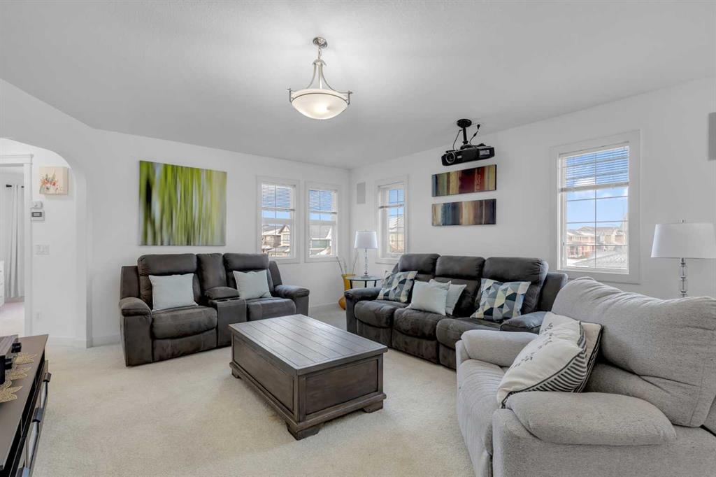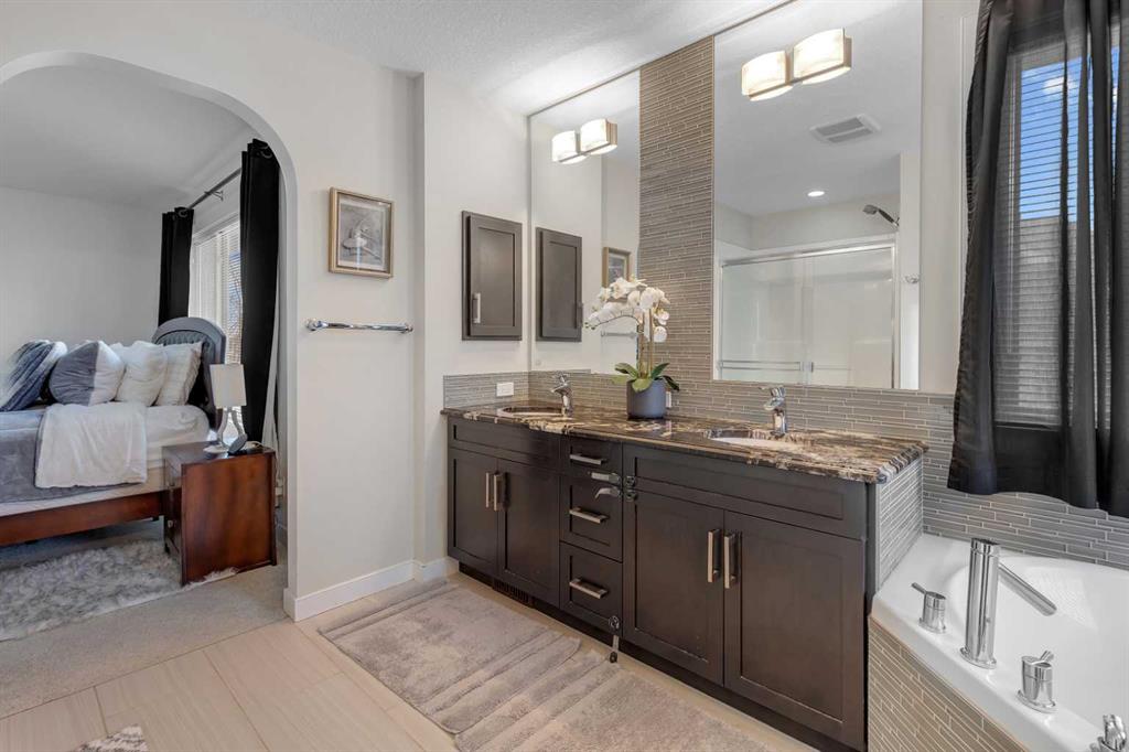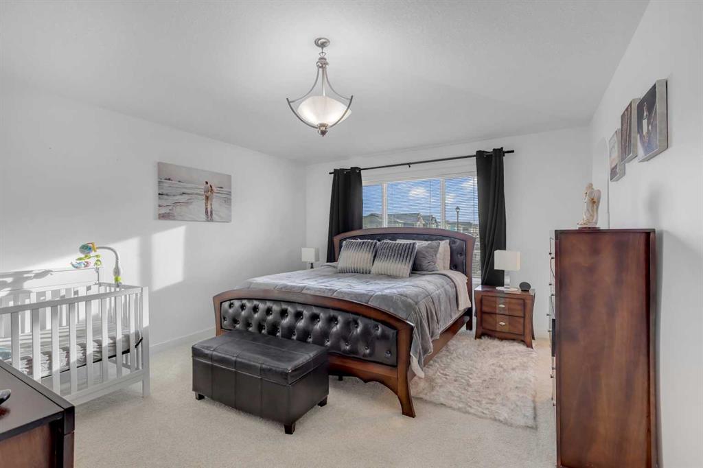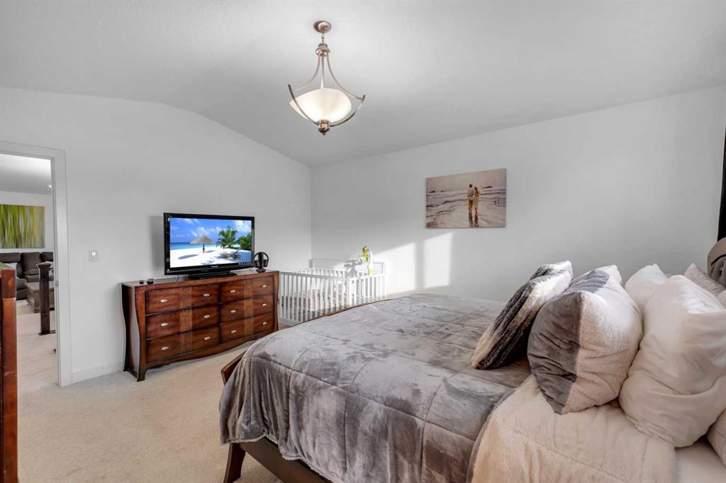 On the second floor, you’ll find a sizable family room with vaulted ceilings, along with 4 bedrooms, including the luxurious master suite. The master suite also features vaulted ceilings and includes a 5-piece ensuite bathroom, complete with a corner Jacuzzi tub and plenty of space in the walk-in closet.